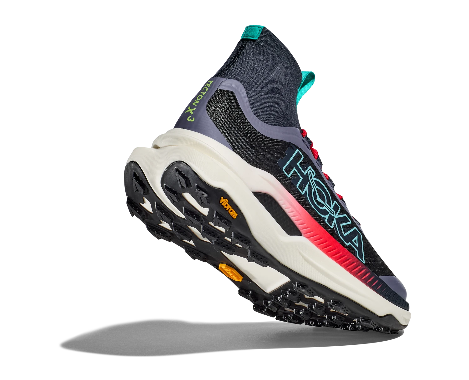 Ready to propel you through gnarly terrain, the Tecton X 3 adds winglets to its carbon fiber plates for extra stability in just the right spots, and two layers of PEBA in the midsole—our lightest, most resilient compound. Redesigned lug shape and positioning on a Vibram® Megagrip with Litebase outsole provide better traction, while a dynamic vamp allows feet to splay as the miles fly by. Topping it off, a knit collar extends up from the tongue like a gaiter to mitigate trail debris, and a lightweight Matryx® textile upper makes this version more durable and trail-worthy than ever.